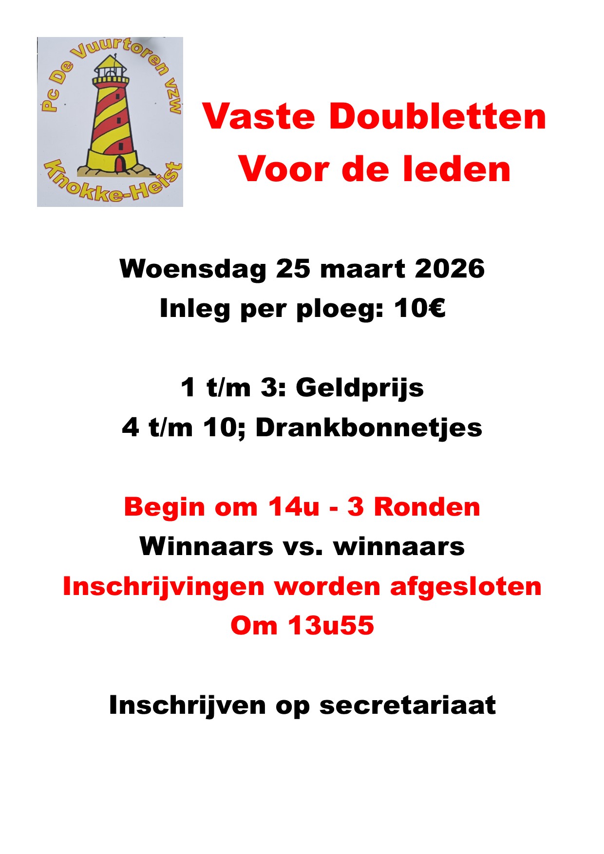 Gelieve het inschrijvingsuur na te leven zodat we op tijd kunnen starten
